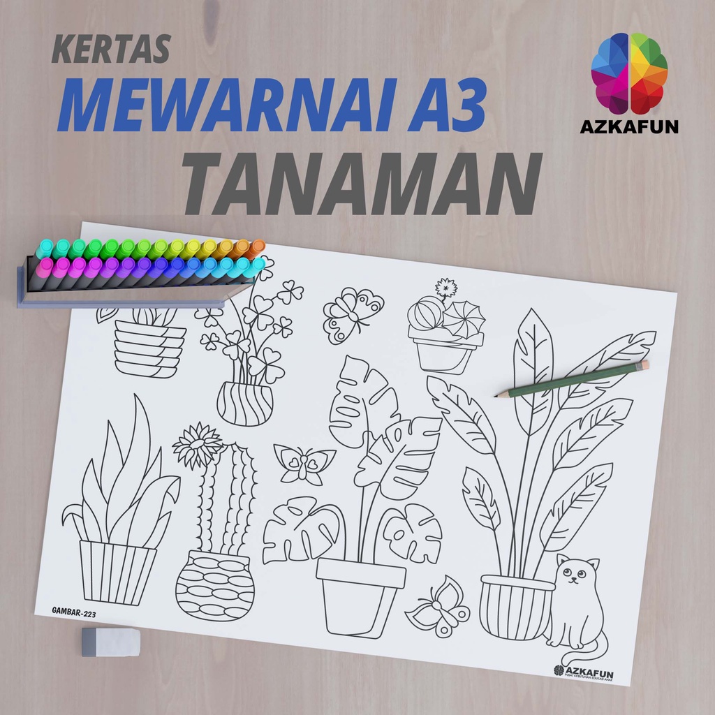 Kertas Mewarnai A3 TANAMAN - Mewarnai tema tanaman house plant