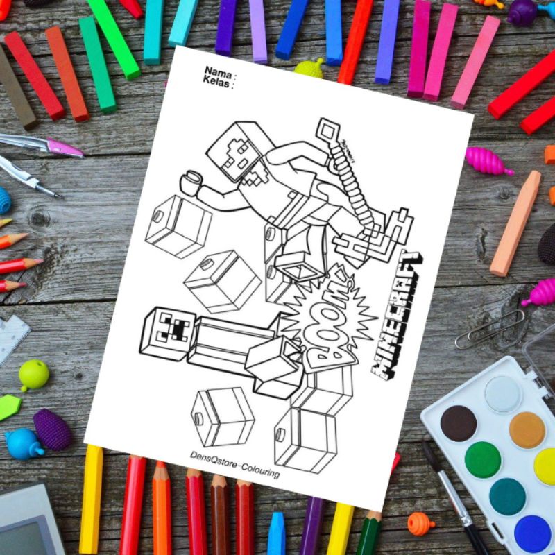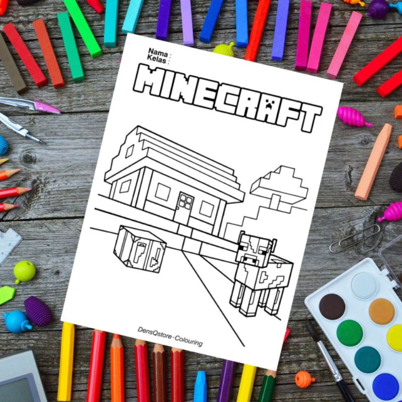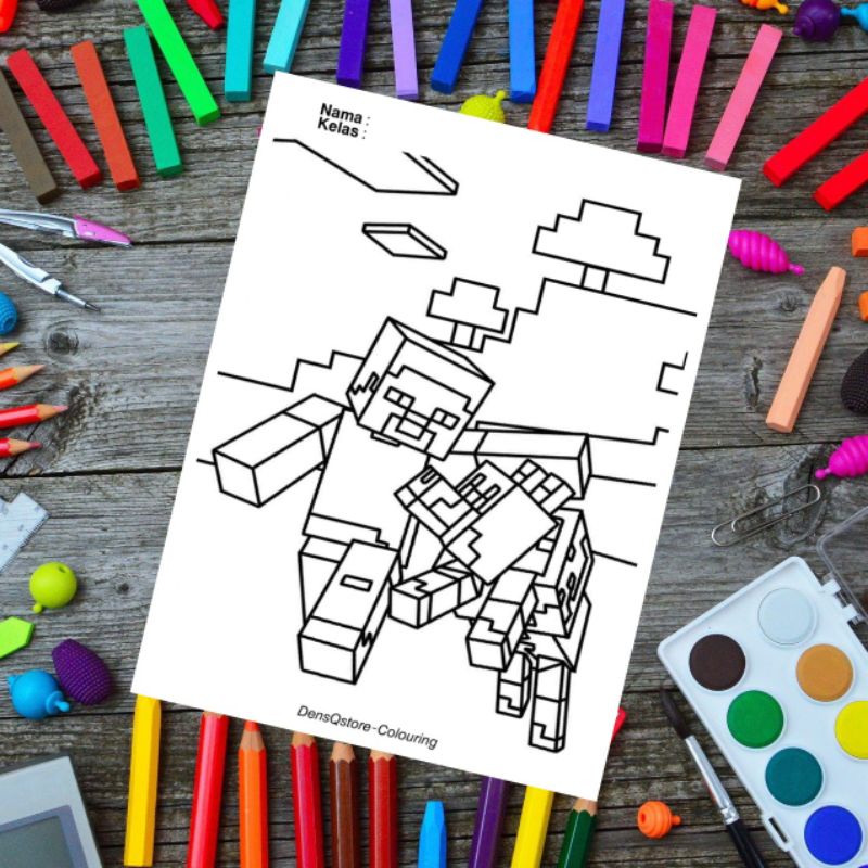 Kertas Mewarnai Anak Tema Minecraft / Kertas Gambar (10 Lembar Gambar)