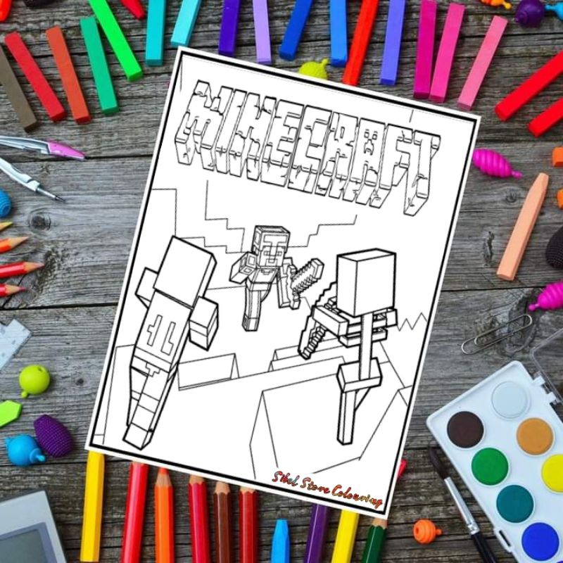 Kertas Mewarnai Gambar Anak Tema Minecraft 02 / Kertas Gambar (10 Lembar Gambar)