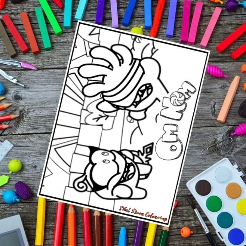 Kertas Mewarnai Gambar Anak Tema Om Nom V1 / Kertas Gambar (10 Lembar Gambar)