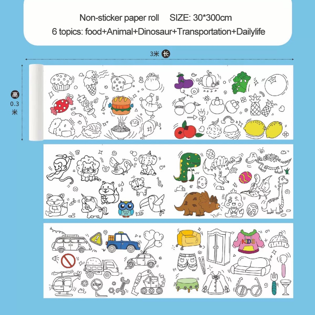 Kertas Mewarnai jumbo dan besar /Kertas bisa jadi STIKER/COLORING ROLL Paper/ 38cm*300cm/Anak Edukasi Mainan