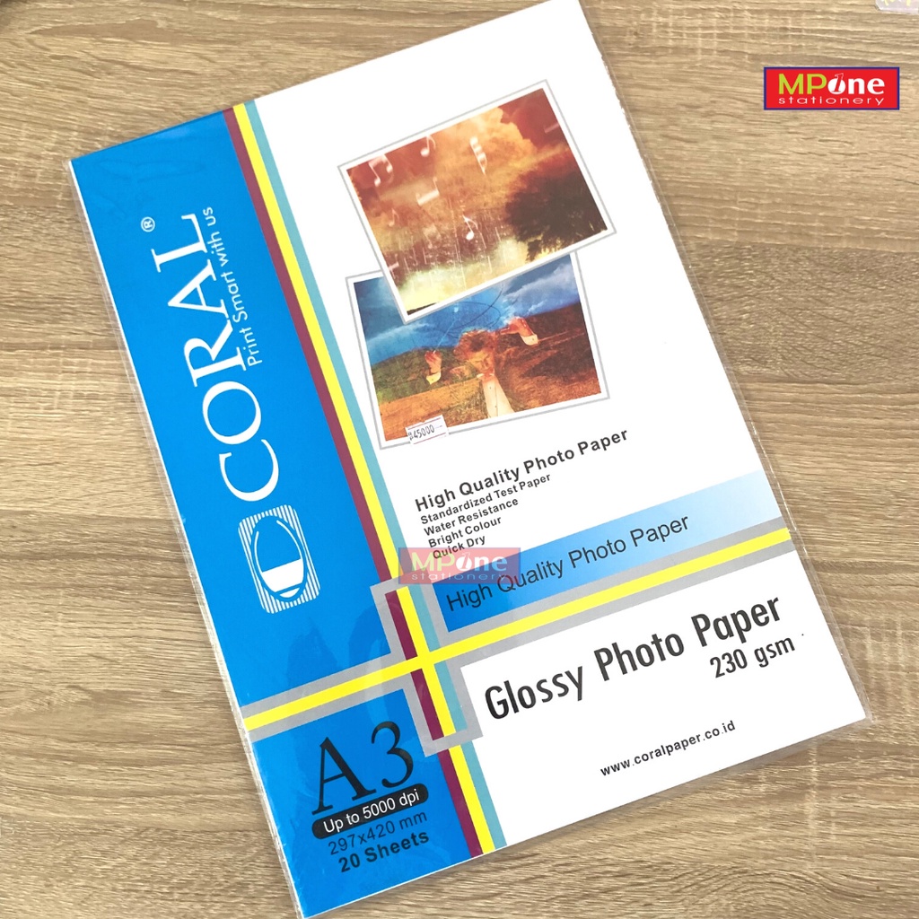 Kertas Photo Glossy Coral 230 A3 / Kertas Photo Glossy Coral 230 gr A3 / Kertas Photo Glossy Coral A3 230 GSM