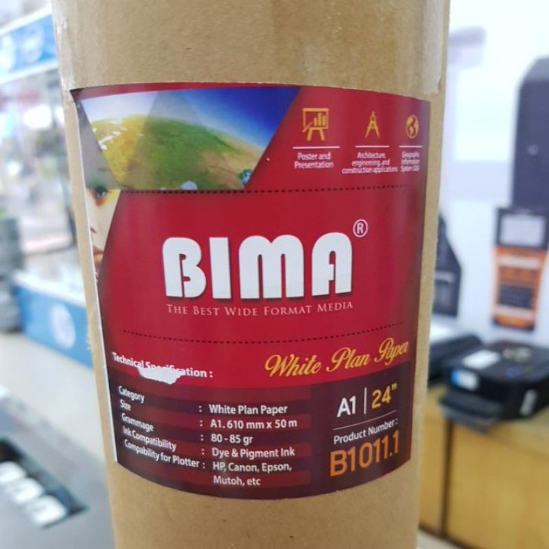Kertas Plotter A1 50m / Hvs Roll A1 80 gram Bima kertas Plotter A0 50m