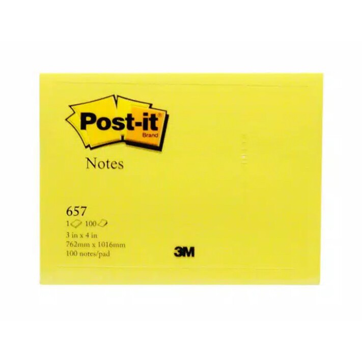Kertas Post It Besar Warna Kuning Sticky Notes Ukuran 76mm x 101mm Isi 100 Lembar 3M 657