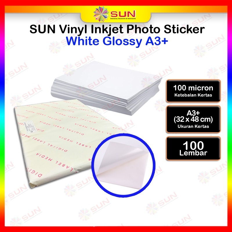 Kertas Sticker Vinyl - SUN Sticker Vinyl Glossy / Inkjet Matte A4 500 Lembar / A3+ 100 Lembar