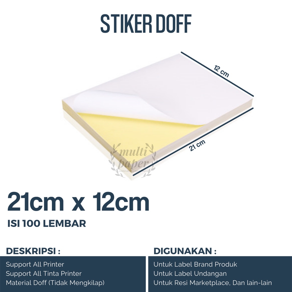 Kertas Stiker Doff Custom Potong isi 100 lembar / Kertas Stiker HVS / Kertas Sticker Doff / Kertas Sticker HVS