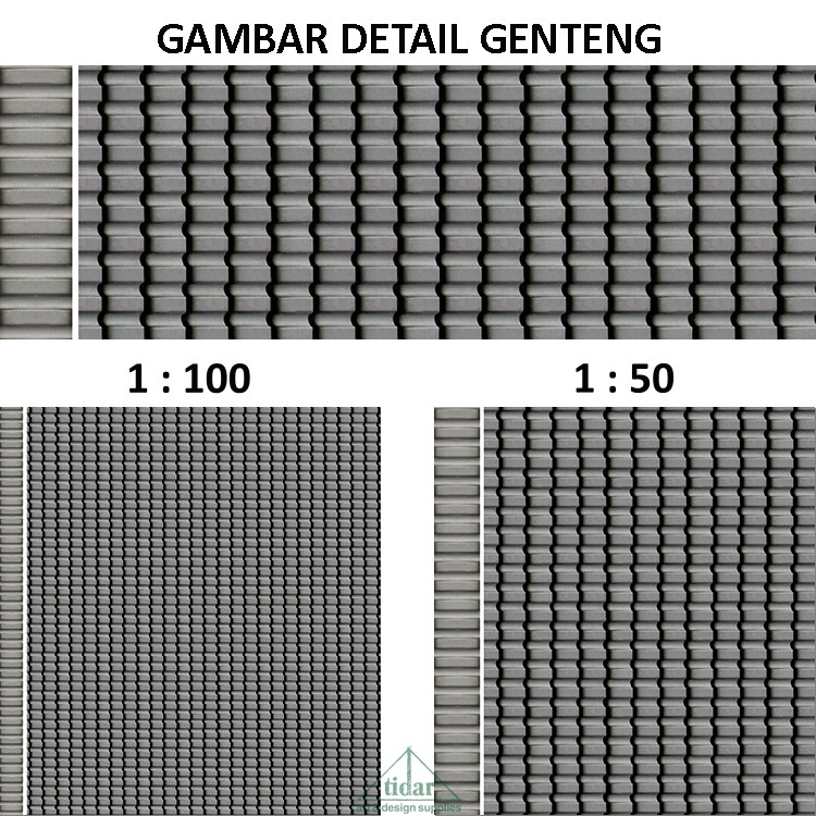 Kertas Motif / Corak Genteng Abu Skala - Atap / Miniblock