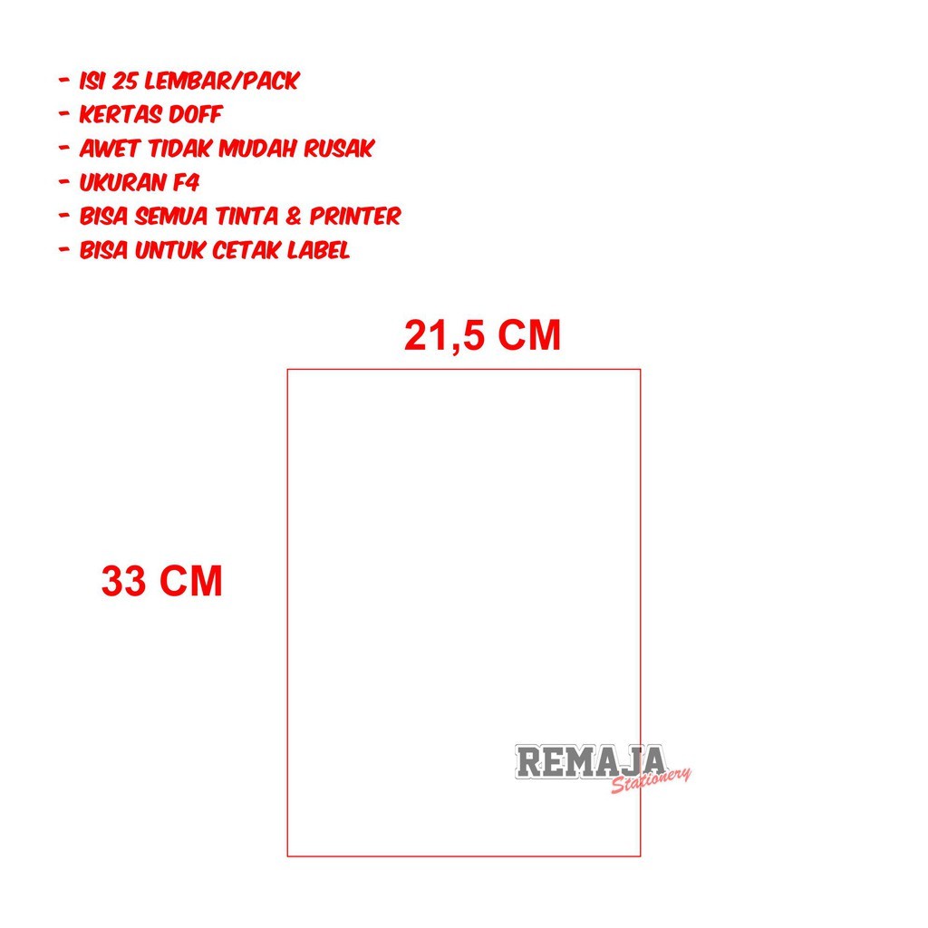 Kertas sticker / stiker bontak/ chromo F4 doff/ HVS /pack ( isi 20 lembar )