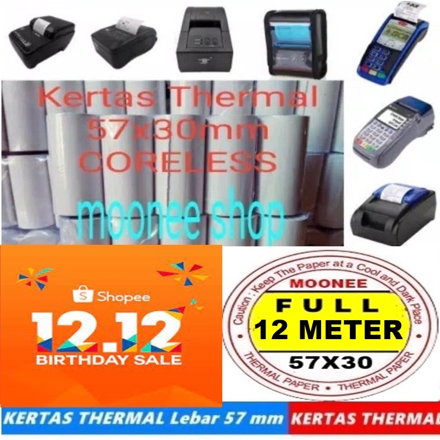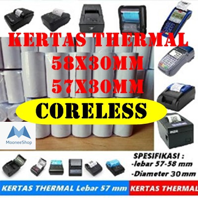 Kertas thermal 57x30 mm / Kertas Struk 58x30 mm printer bluetooth polos, SPOTS KASIR EDC BRI 57 X 30