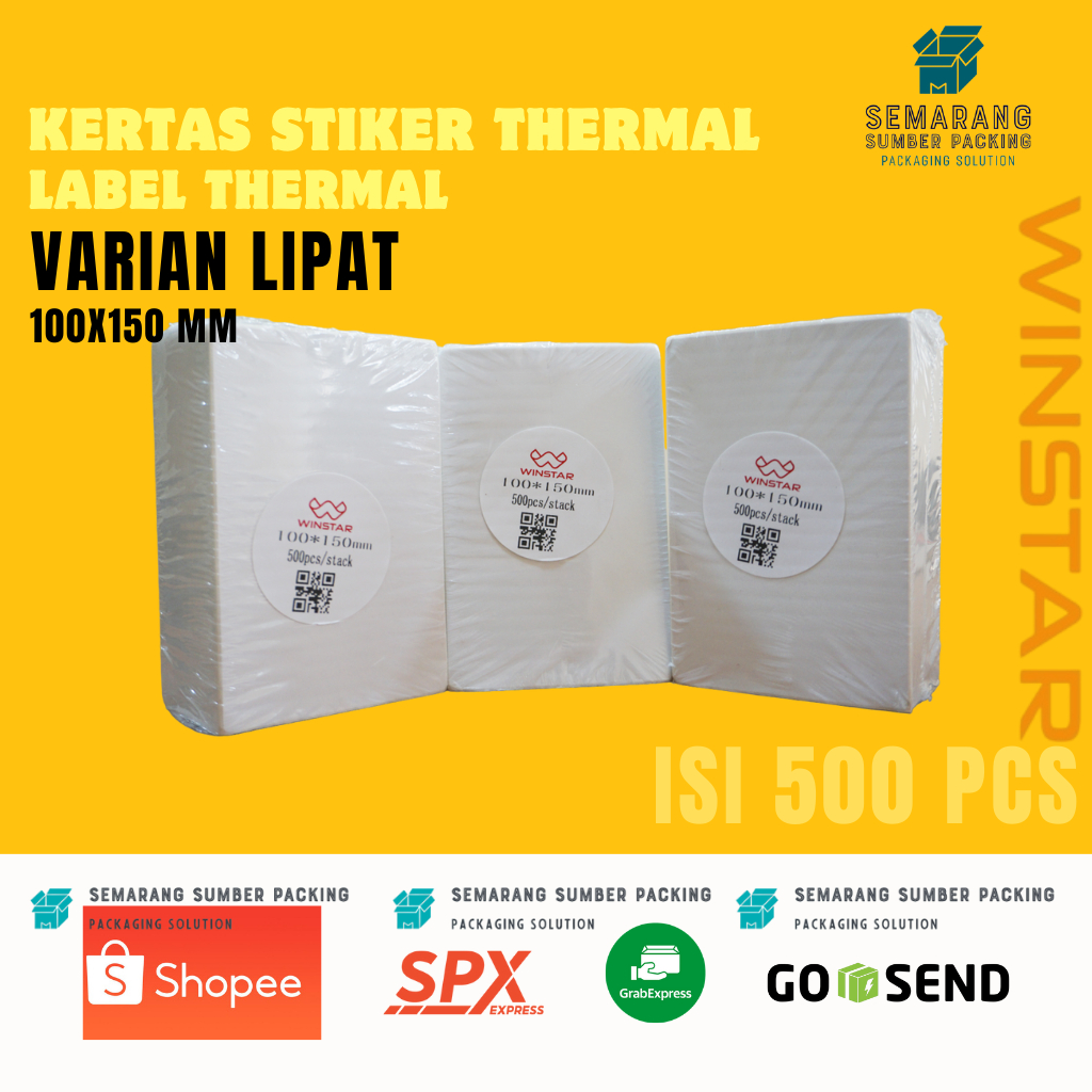 Kertas thermal label stiker 100x150 mm isi 500 pcs lipat kotak resi online