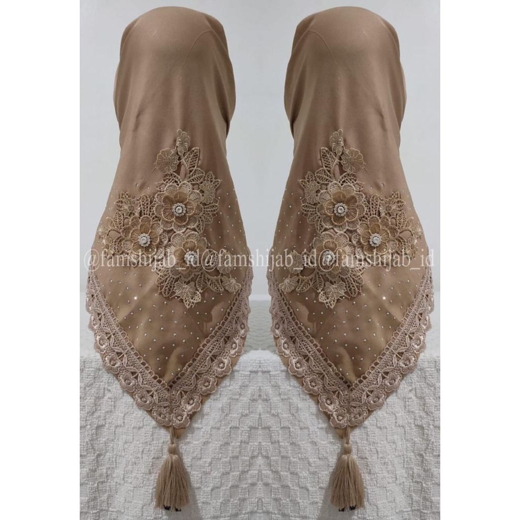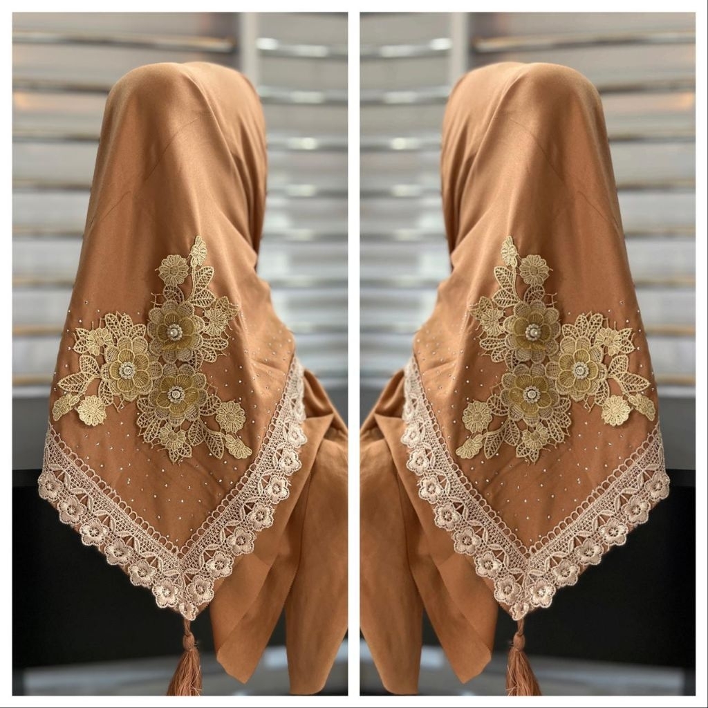 hijab segi empat renda bordir mewah / kerudung segi empat pesta