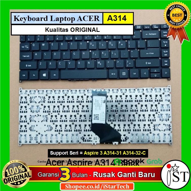 Keyboard Acer Aspire 3 A314 A314-21 A314-41 33 31 A514 A514-52 A514-53 - Hitam