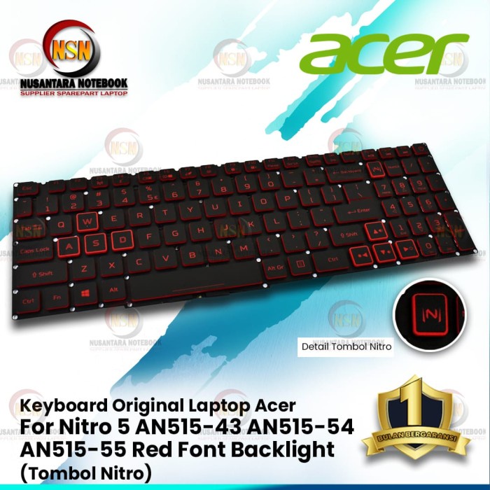 Keyboard Acer Nitro 5 AN515-43 AN515-54 AN515-55 - RED FONT BACKLIGHT