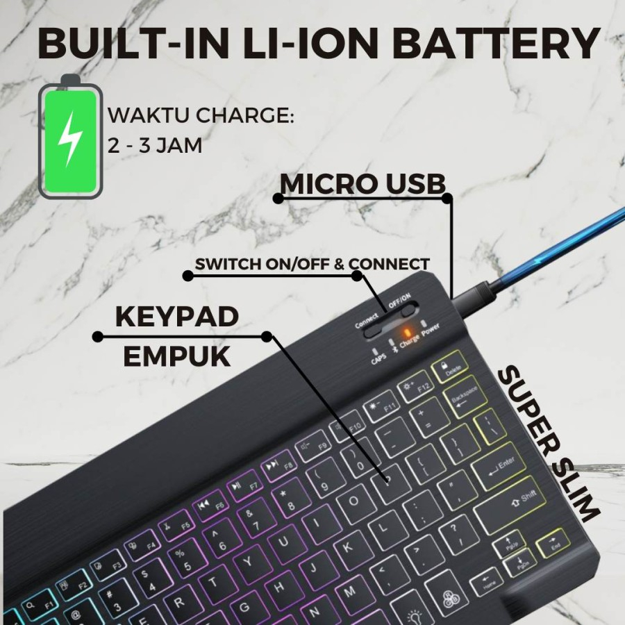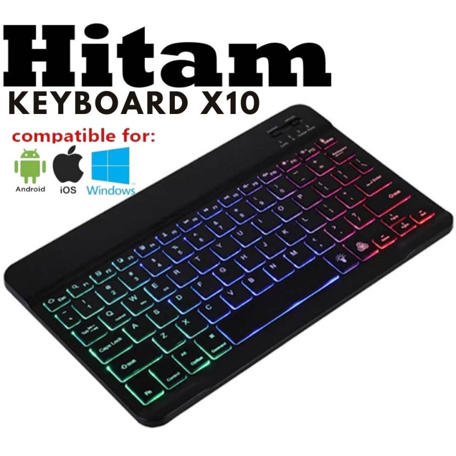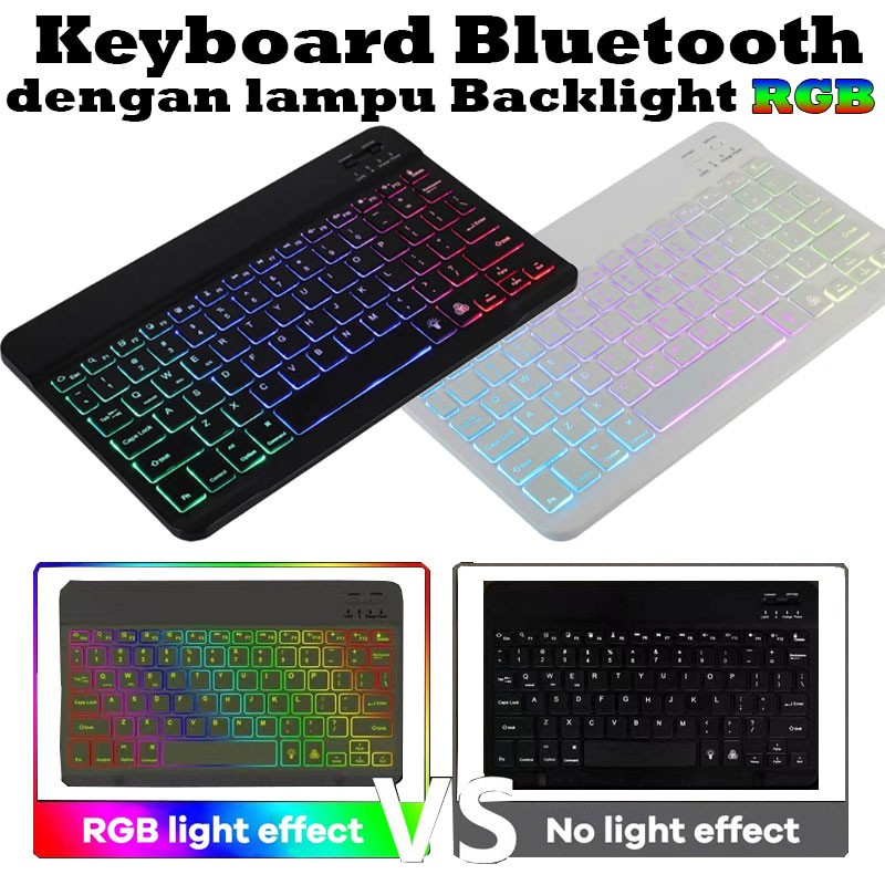 Keyboard Bluetooth Wireless RGB LED Backlight Ringan, Slim & portable for Smartphone Android IOS PC Laptop