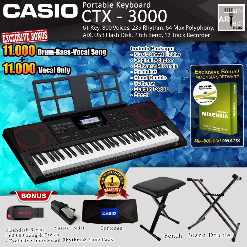 Keyboard Casio CTX-3000 + Stand / CT-X3000 / CTX3000 (diatas psr e463)