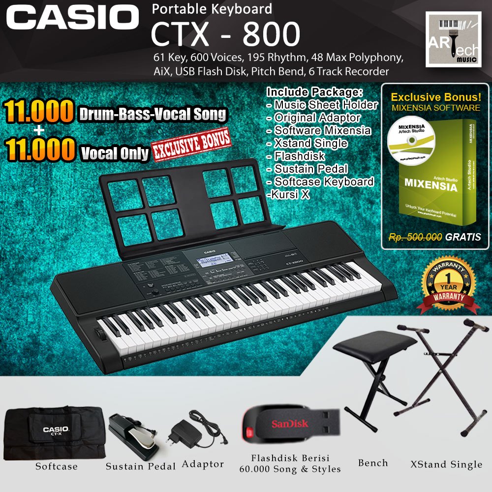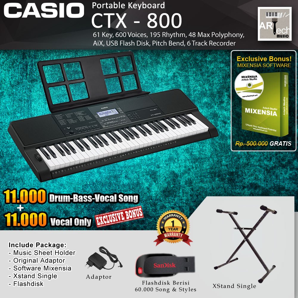 Keyboard Casio CTX-800 With Stand - CT-X800 - CTX800 - Spek Diatas PSR E363 - Setara E463