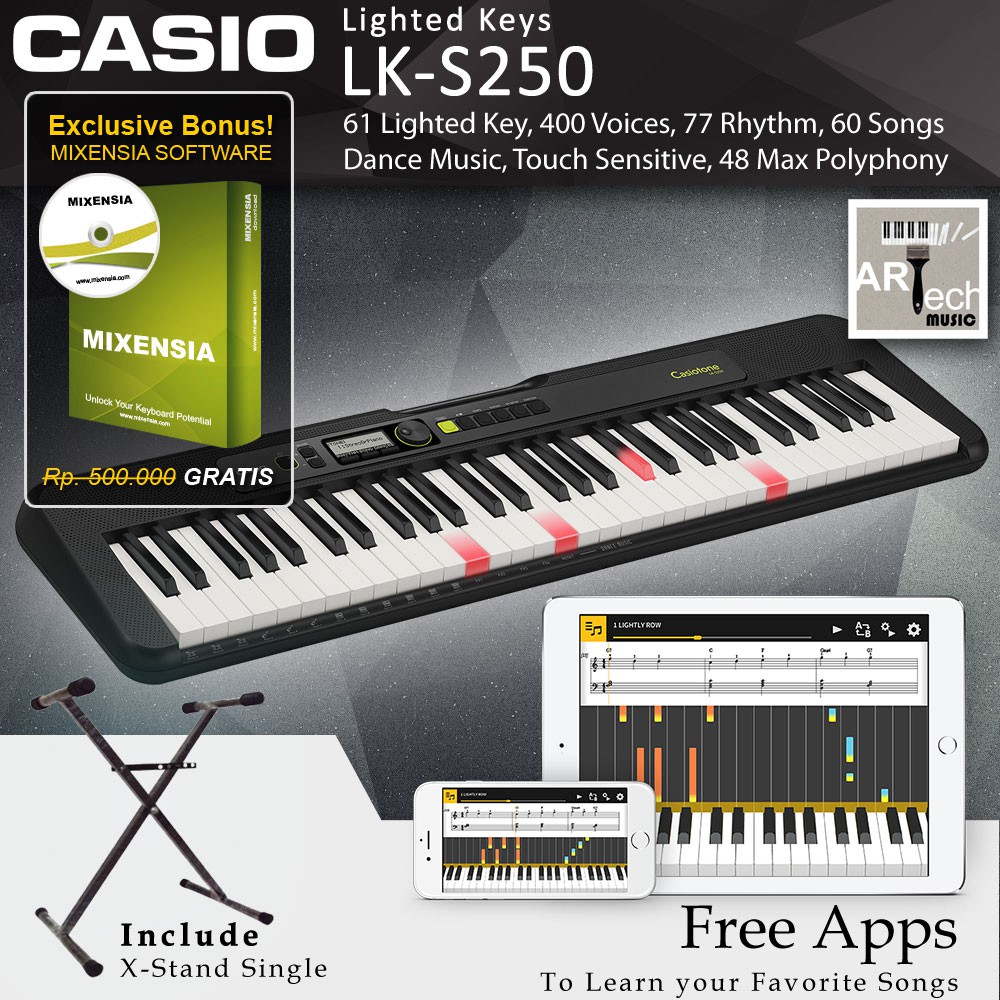 Keyboard Casio LK-S250 / LKS250 With Xstand Lighted Key Garansi Resmi