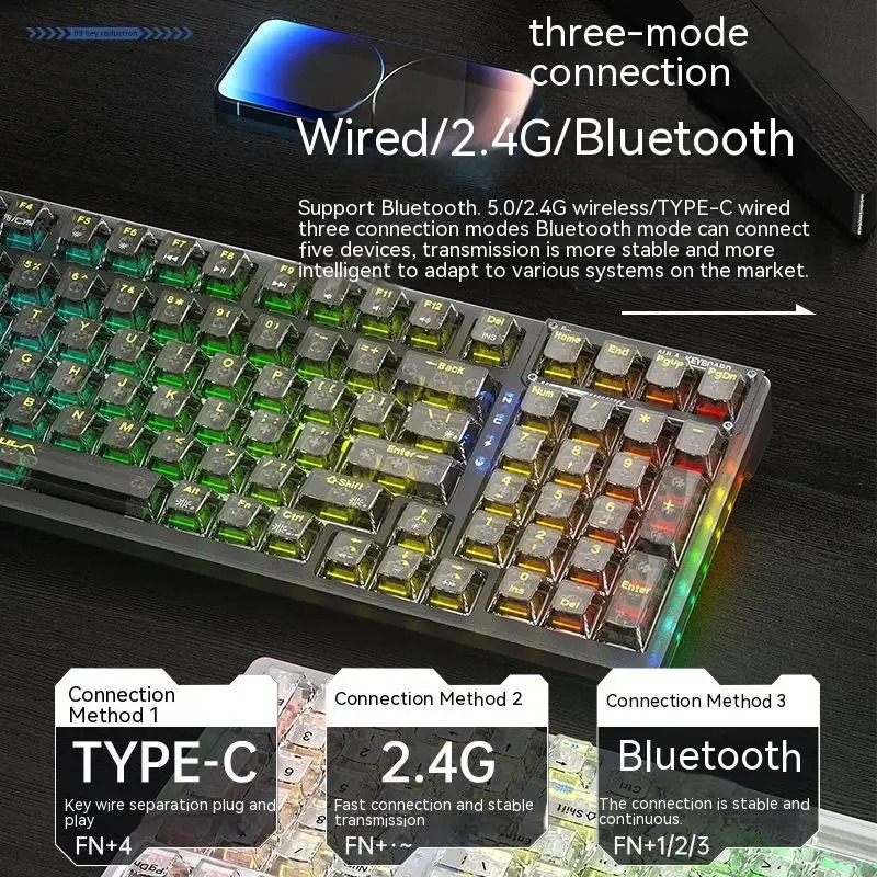 AULA F98 Gasket Mechanical Keyboard Fully Transparent RGB with 3 mode connection - Garansi 1 Tahun
