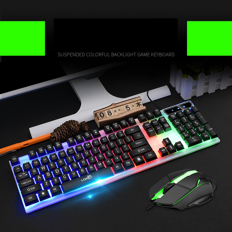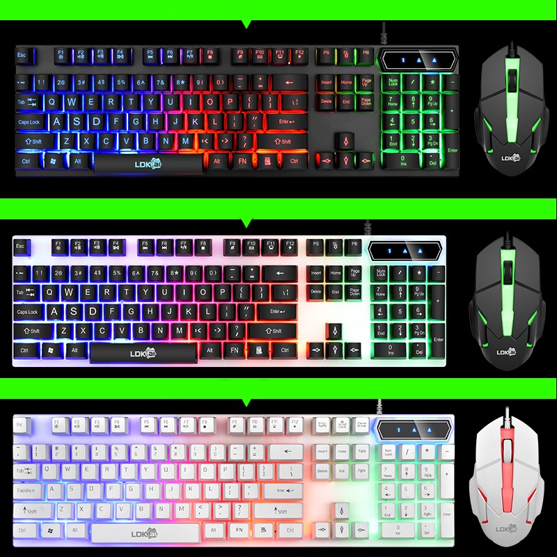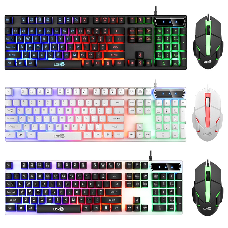 Keyboard Gaming Komputer Laptop Kibot Kiboard LED with Mouse Mous LDKAI 832 - Black