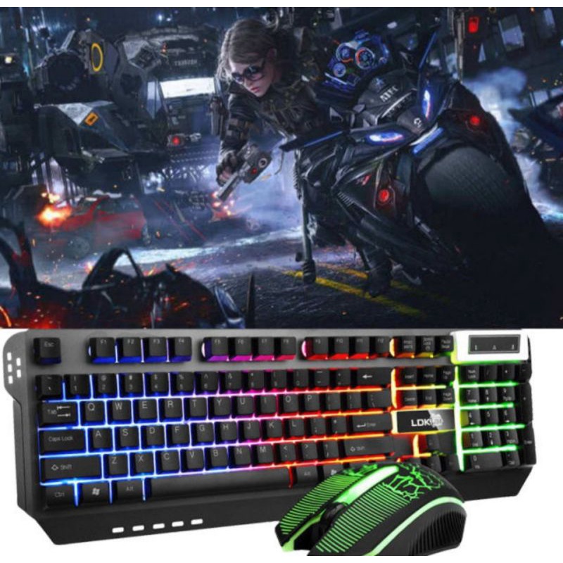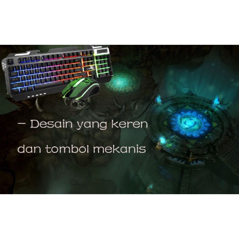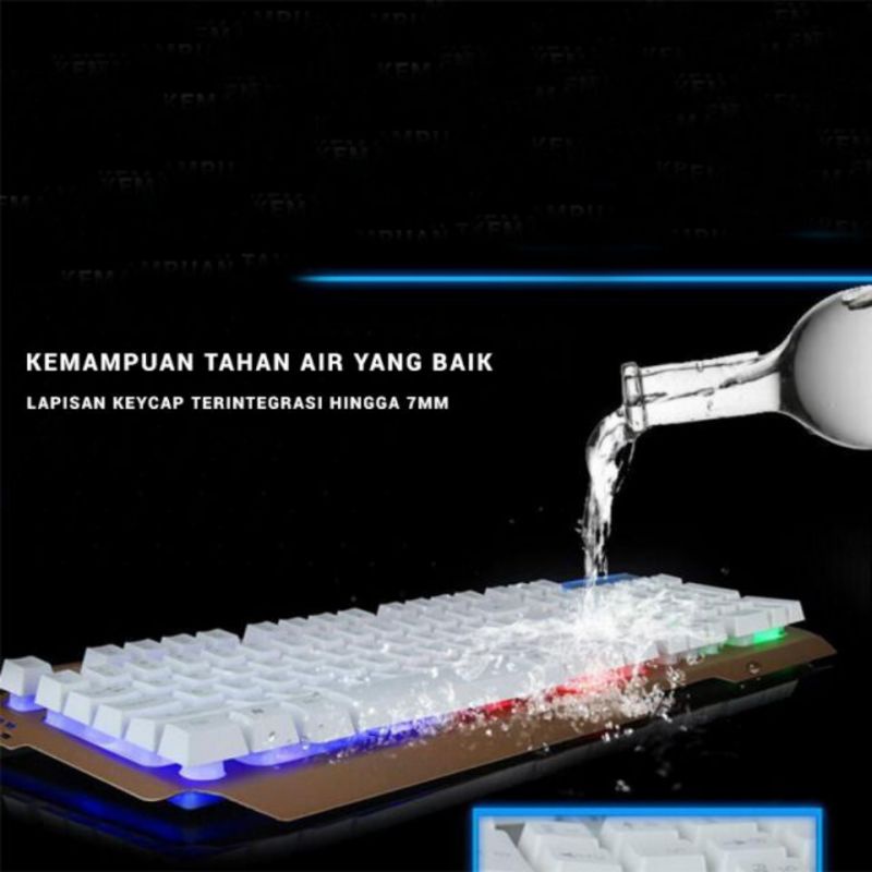 Keyboard Gaming Set Tahan Air Backlight Led Warna Warni (Include Mouse)