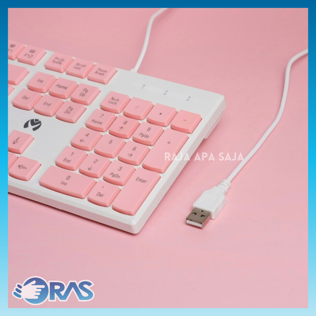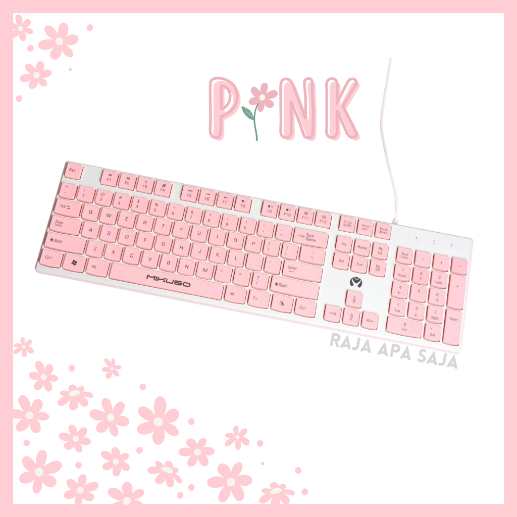Keyboard Laptop Komputer Kabel USB Keybord Kiboard Kibord PC Leptop Letop Gaming Pink Mikuso KB-052U