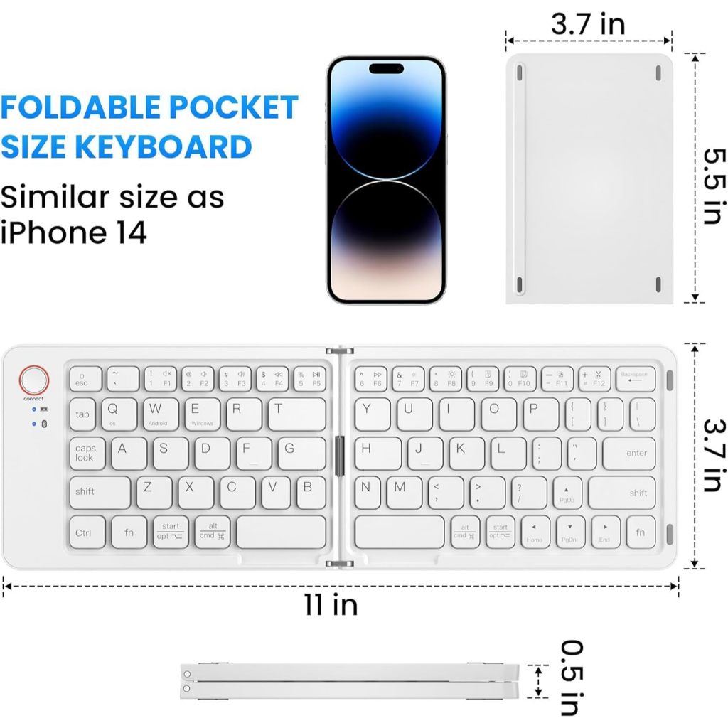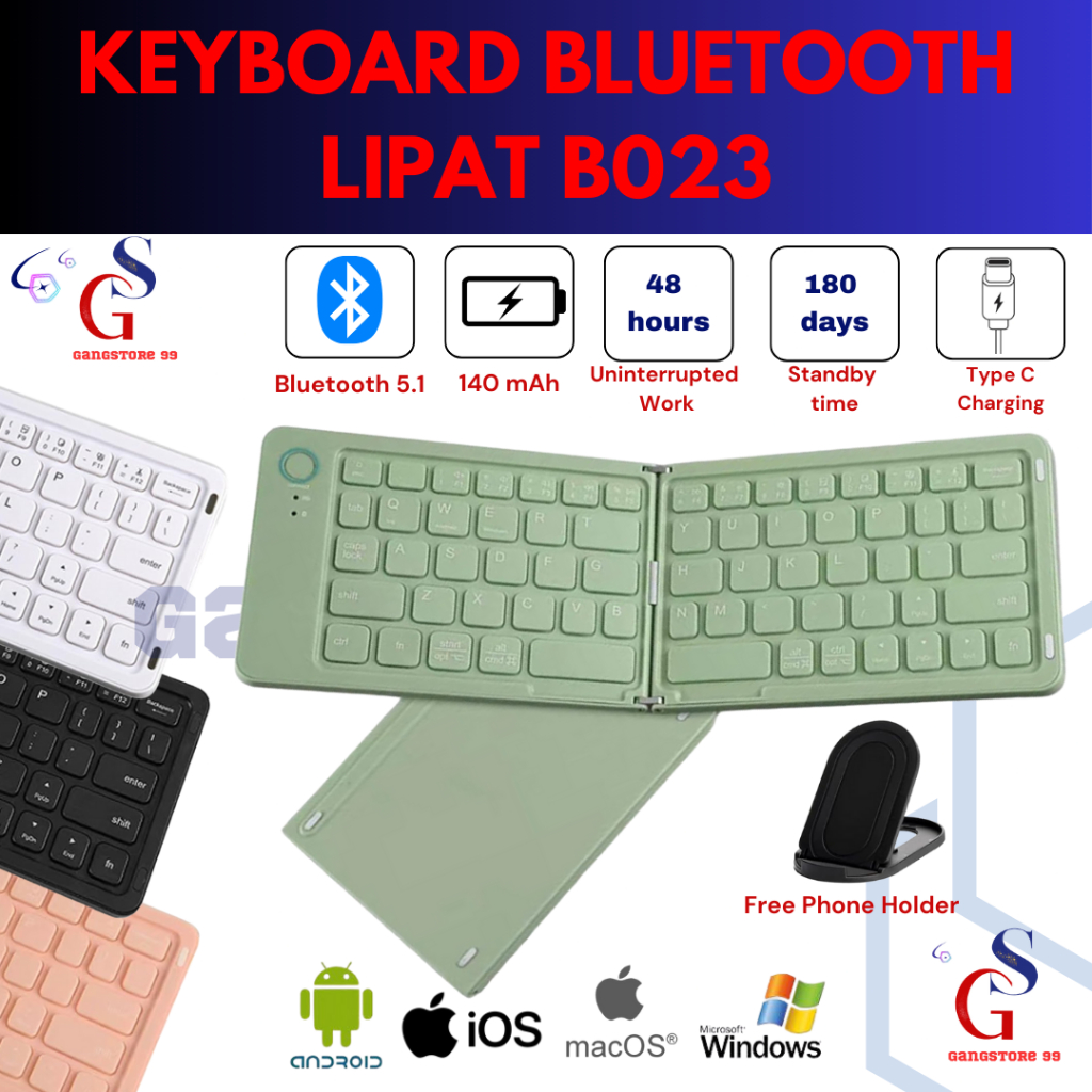 Keyboard Lipat Wireless Bluetooth Mini Portable Foldable Laptop HP Tablet Rechargeable Type C Keyboard Folding Mini Lipat Bluetooth 5.1 Support Windows Android MAC OS B023