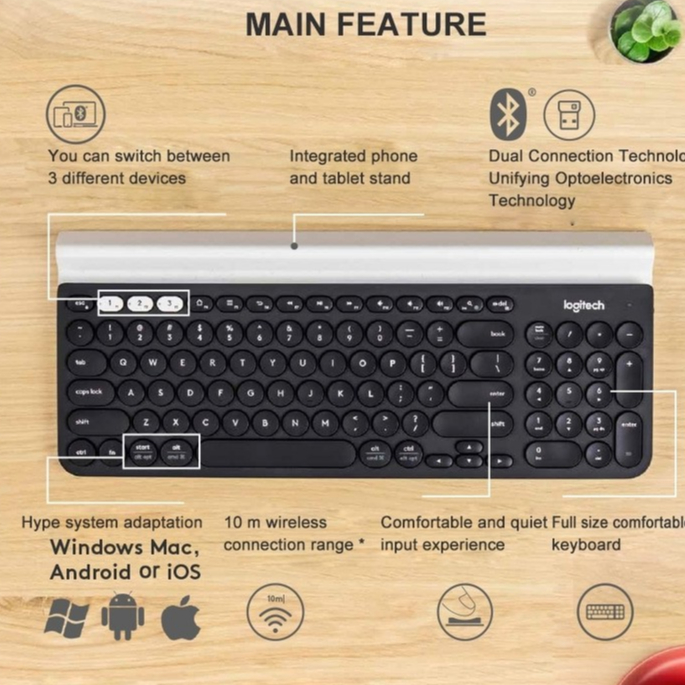 Keyboard Logi K780 Wireless Bluetooth Dual Mode PC Tablet HP
