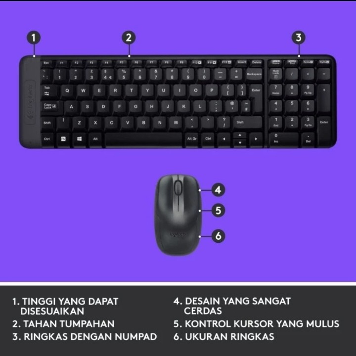 Keyboard Logitech MK220 Combo Keyboard dan mouse Wireless Compact