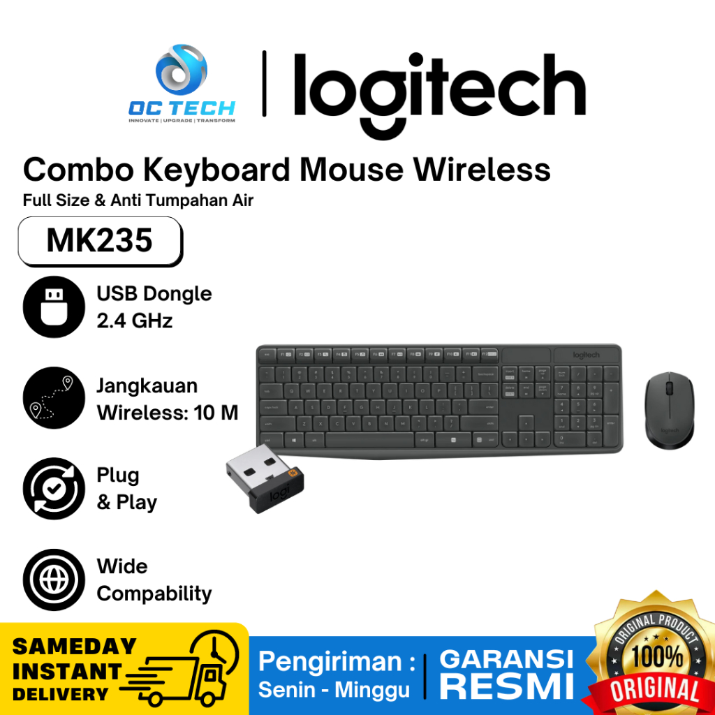 Keyboard Mouse Logitech Wireless MK235 Combo Mouse Keyboard Wireless Original Garansi Resmi