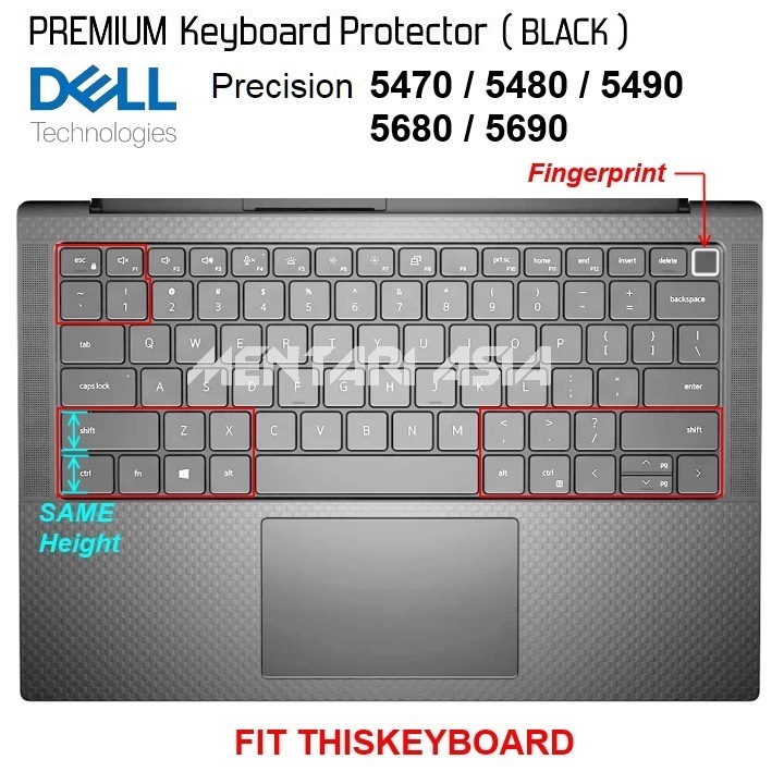 Keyboard Protector DELL Precision 5470/5480/5490/5680/5690 Fingerprint - Premium Silicon BLACK