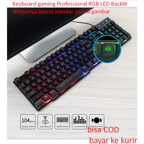 Keyboard gaming Professional RGB LED Backlit lampunya layout standar sesuai gambar