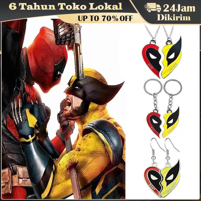 Keychain Couple Deadpool & Wolverine / Gantungan Kunci Best Friend / Kalung dan Anting Matching Yin Yang Set