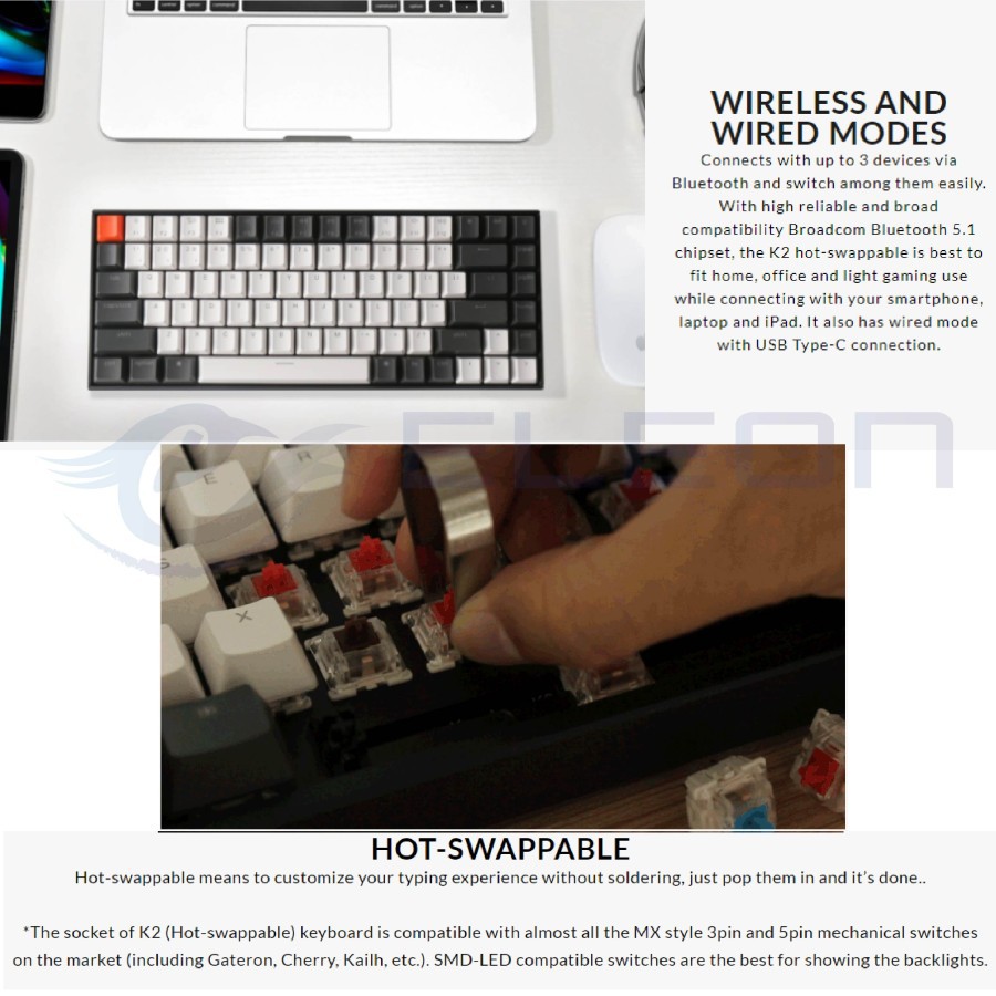 Keychron K2 Hot Swappable White Backlight Plastic Frame 84 Switch