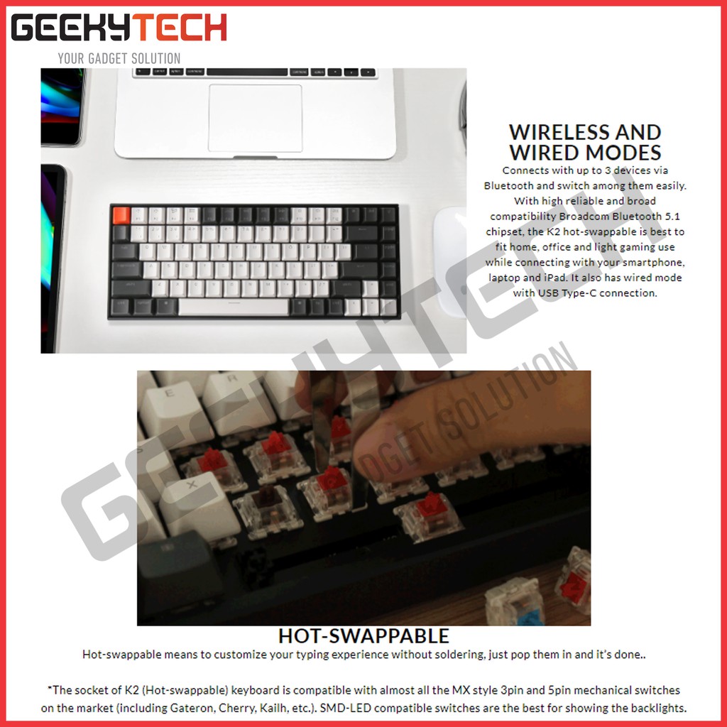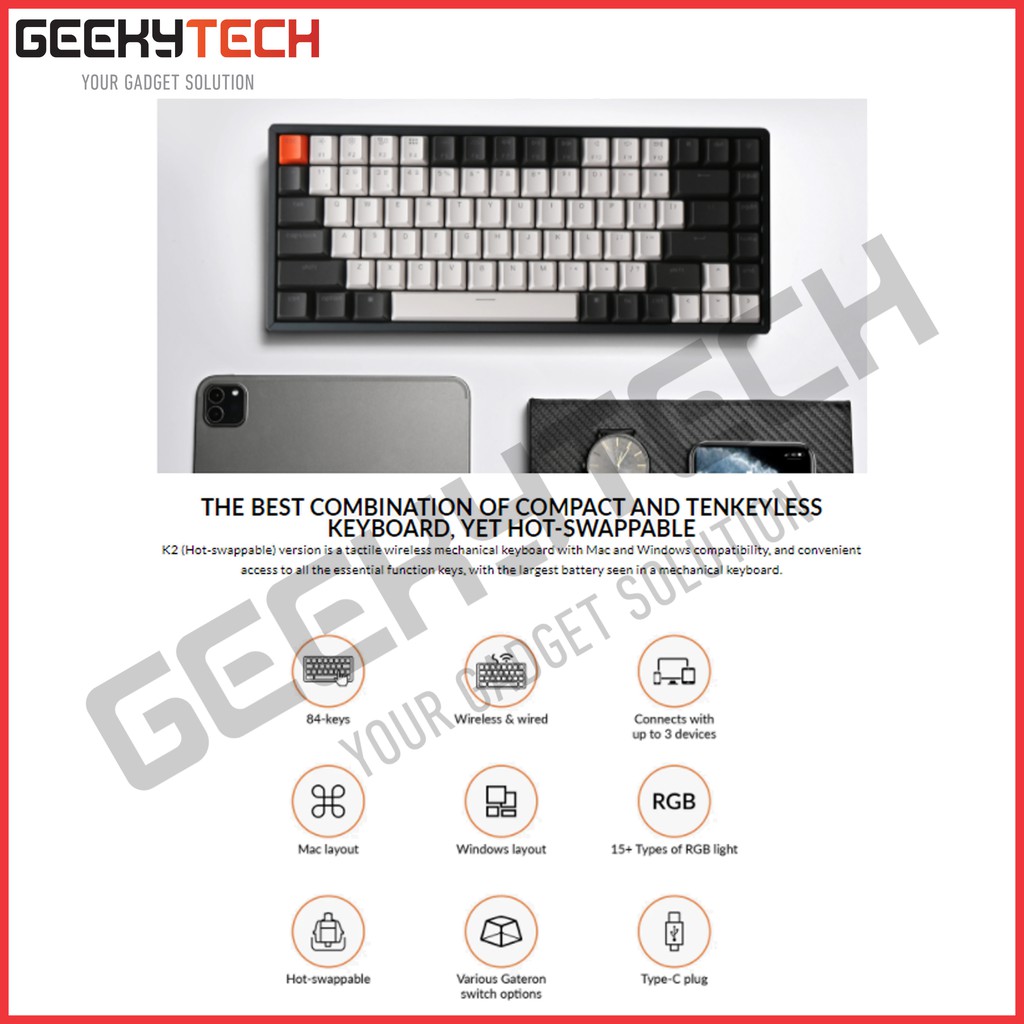 Keychron K2 V2 - 84 - Hot Swappable White Backlight