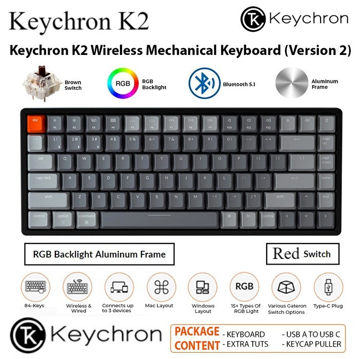 Keychron K2 version 2 Brown Switch White Backlight Plastic Frame K2 V2