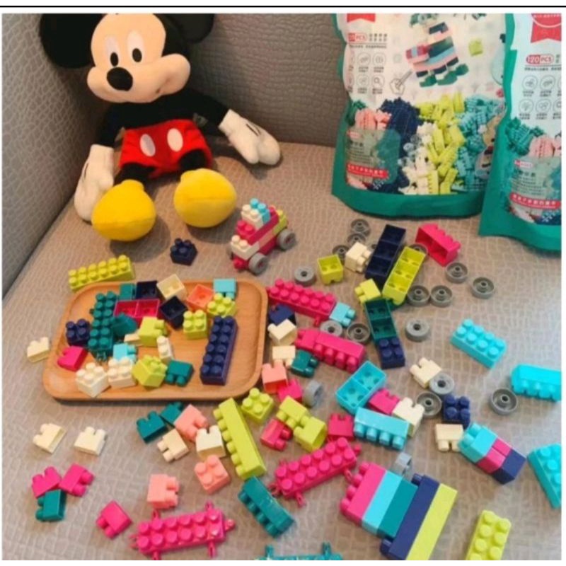 KiSy.Shop Mainan bricks 120pcs pouch kemasan kantong building blocks mainan balok susun brick block blok mainan edukasi