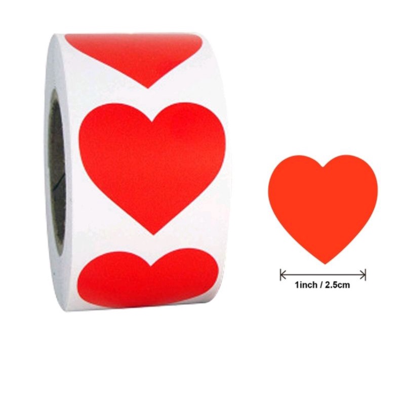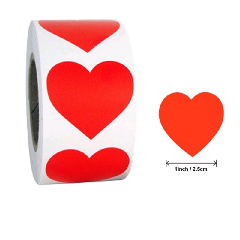 KiSy.Shop Sticker Roll Heart stiker bentuk hati 50pcs / 200pcs stiker reward penilaian anak red heart sticker scrapbook aesthetic sticker hati merah craft paw print sticker