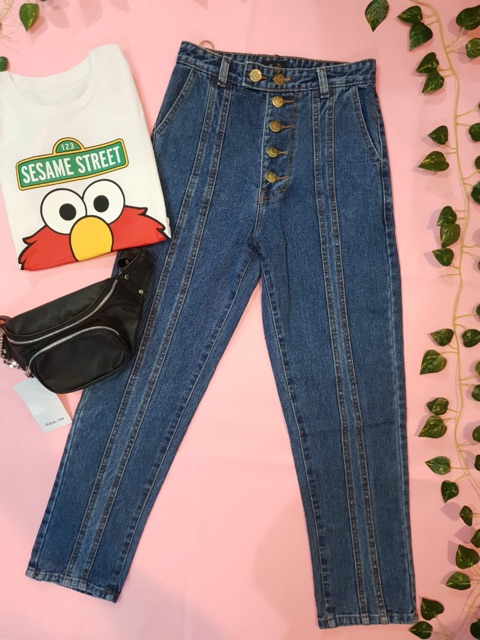 Kiera Button Jeans ( Boyfriend Jeans Button )