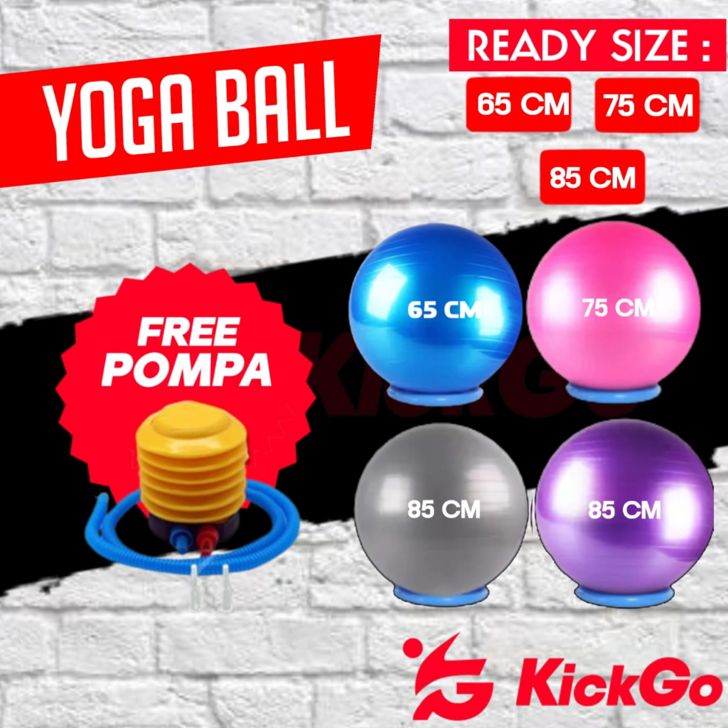 KickGo Bola Yoga Ibu Hamil Balon Olahraga Yoga Gym Ball Ukuran 65cm 75cm 85cm Gratis Free Pompa
