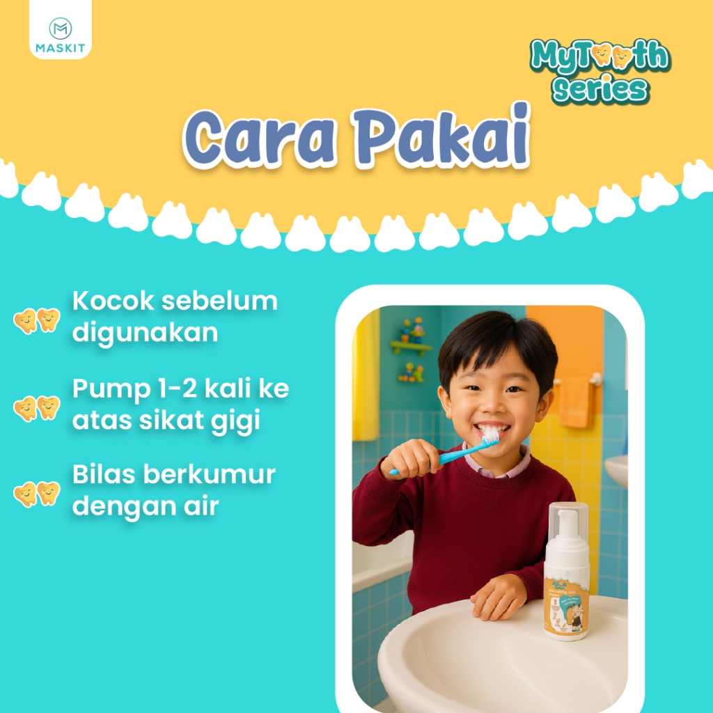 Kids Foaming Tooth Cleaner - Pasta Gigi Foam Busa untuk Anak Rasa Buah tanpa SLS / SLES - MyTooth Series by Maskit