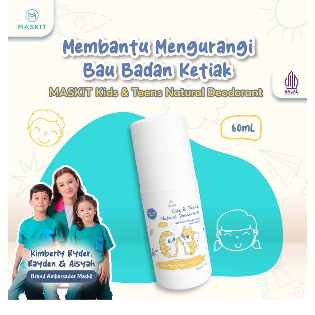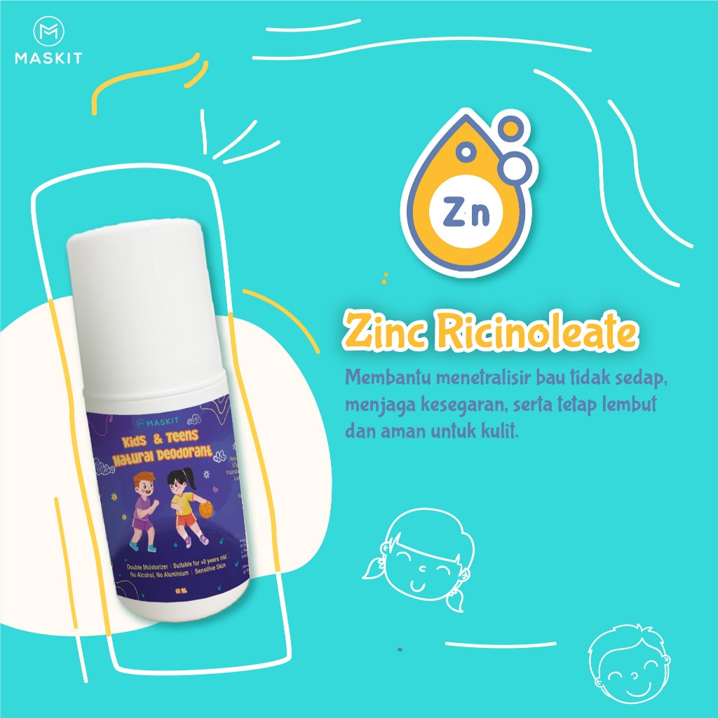 Kids & Teens Natural Deodorant Anak & Remaja - Penghilang Bau Badan Bau Ketiak dan Keringat Alami | No Alkohol, No Alumunium, No Tawas