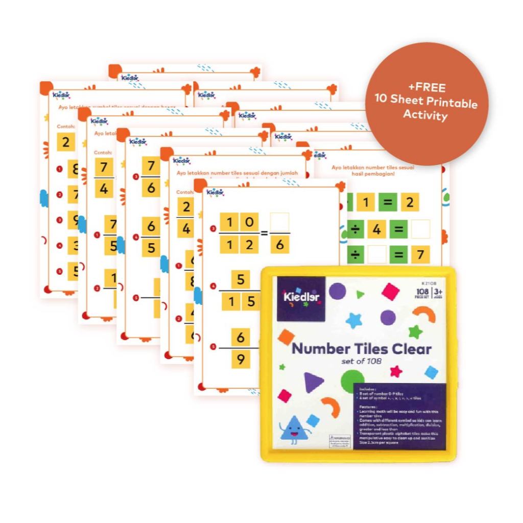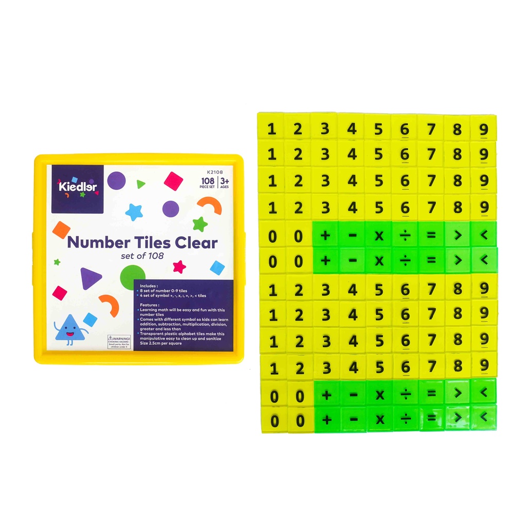 Kiedler - Numbers Tiles Clear Set of 108, Mainan Edukasi Motorik Anak Angka [Free Printable]