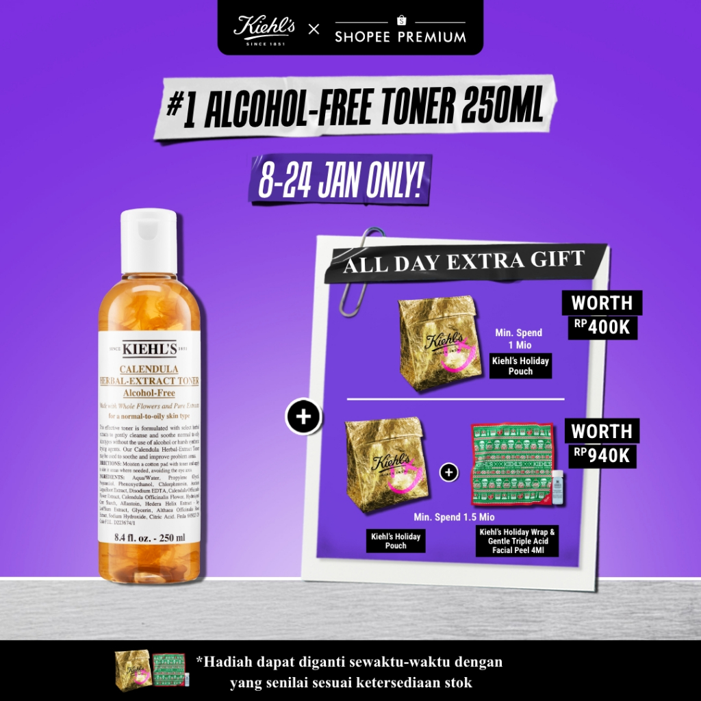 Kiehl's Calendula Herbal-Extract Toner 250 ML. Toner untuk Semua Jenis Kulit Mengandung Calendula Extract