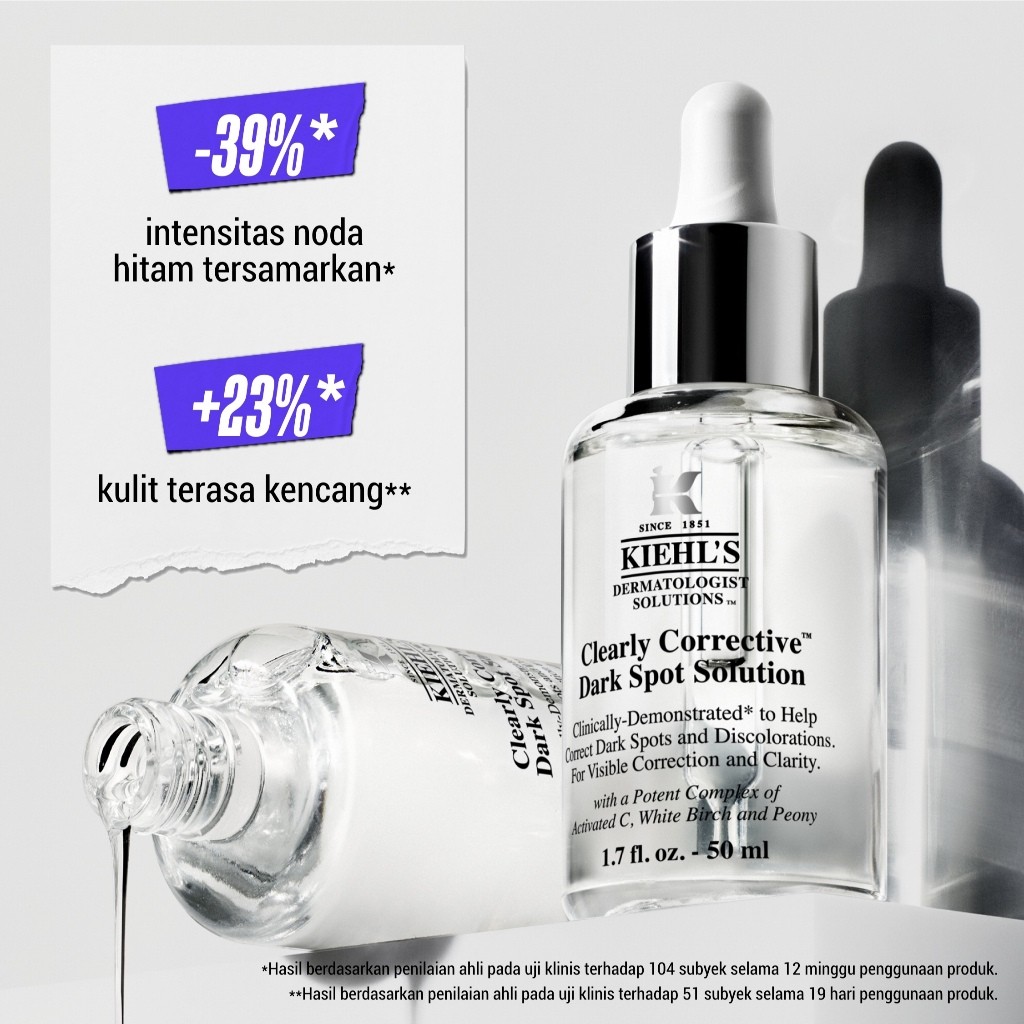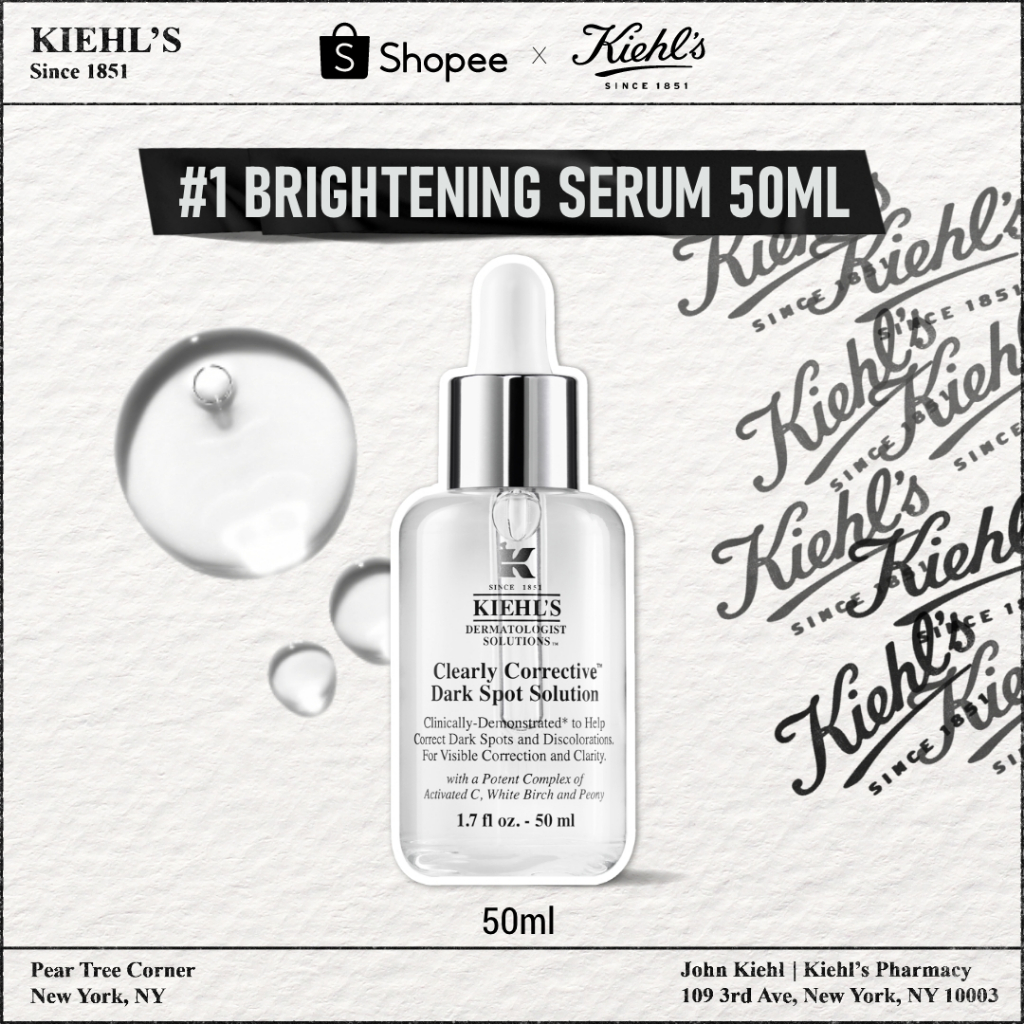 Kiehl's Clearly Corrective™️Dark Spot Solution 50ml. Serum Penyamar Noda Hitam & Meratakan Warna Kulit Mengandung Activated C, White Birch & Peony Extract