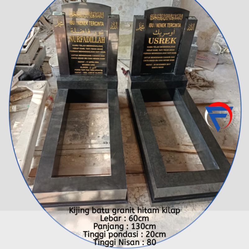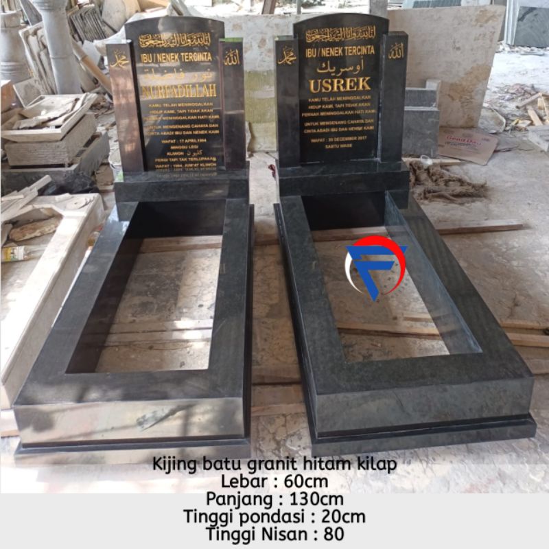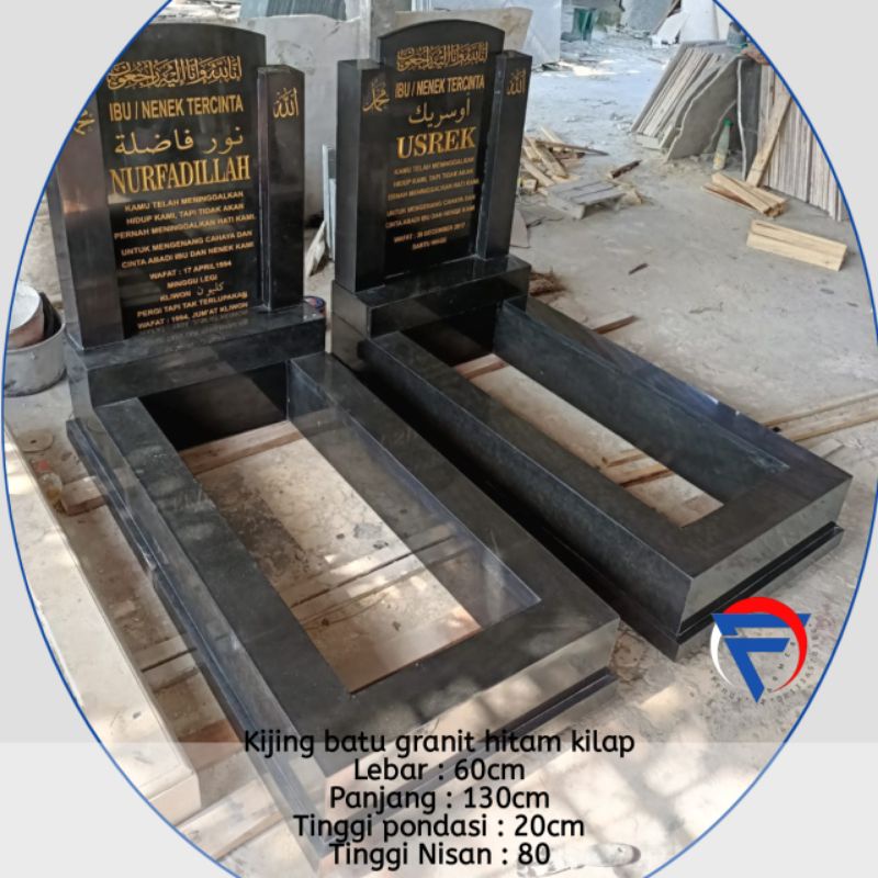 Kijingan makam nisan model tugu prasasti batu granit hitam sumedang