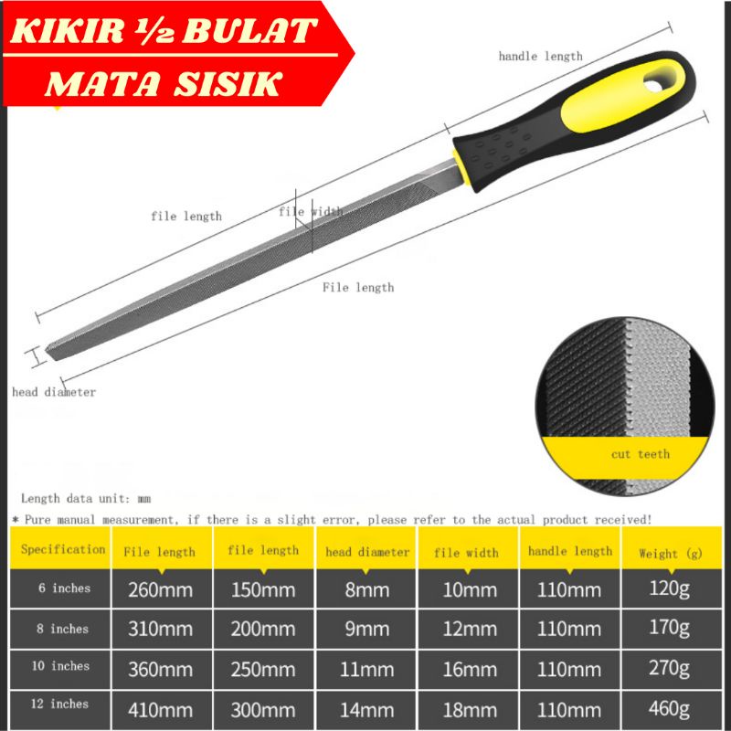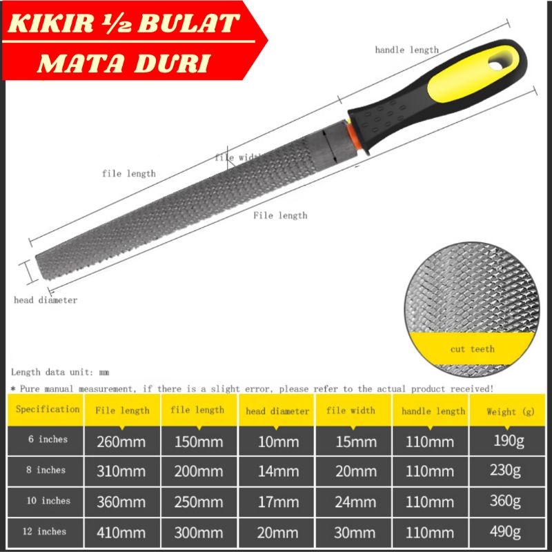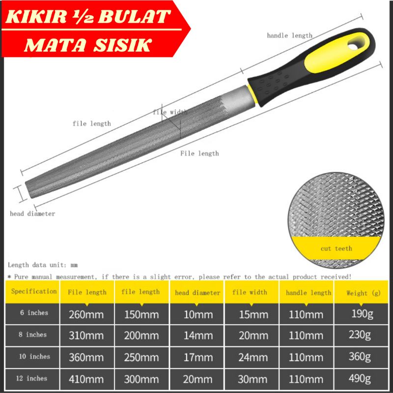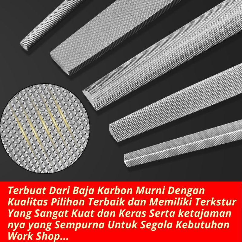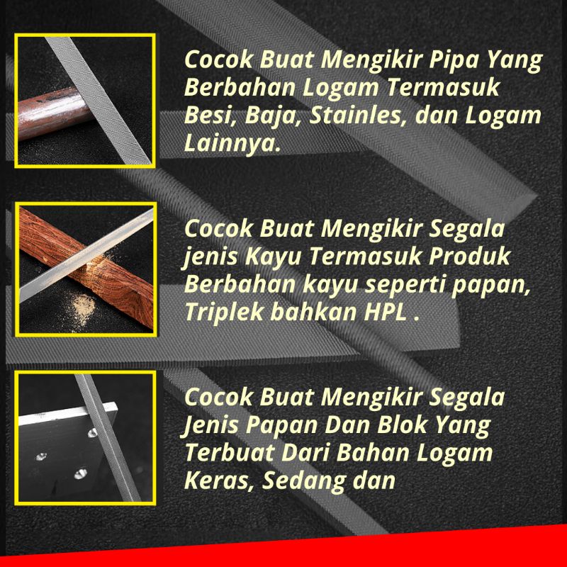 Kikir Besi Baja Besar 8" Inchi Kikir Gepeng Bulat Petak Setengah Bulat Belah Rotan Untuk Kikir HPL Besi Plat Kayu Fiber Akrilik Perkakas Alat Tukang