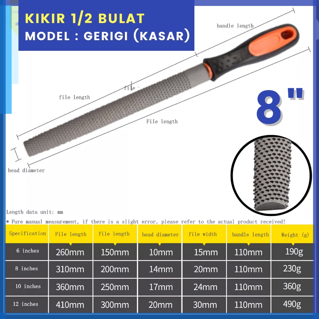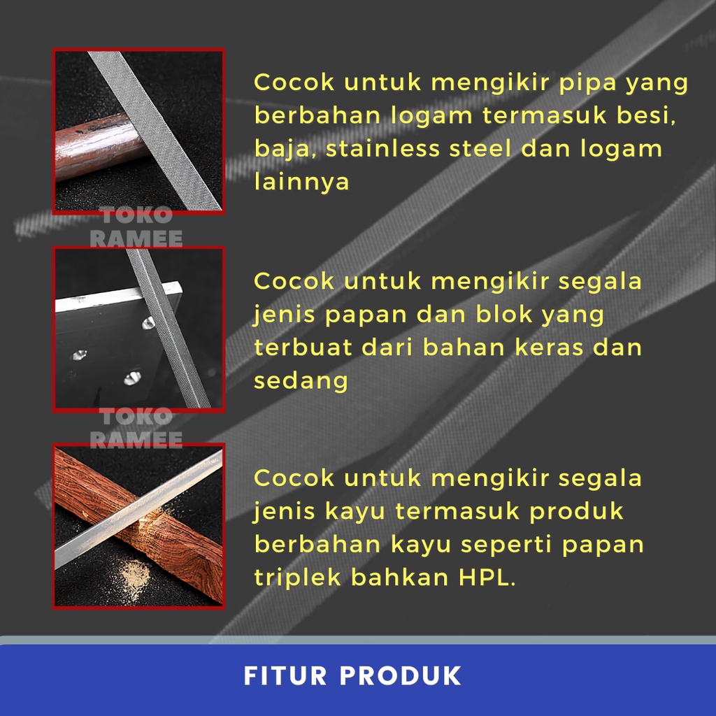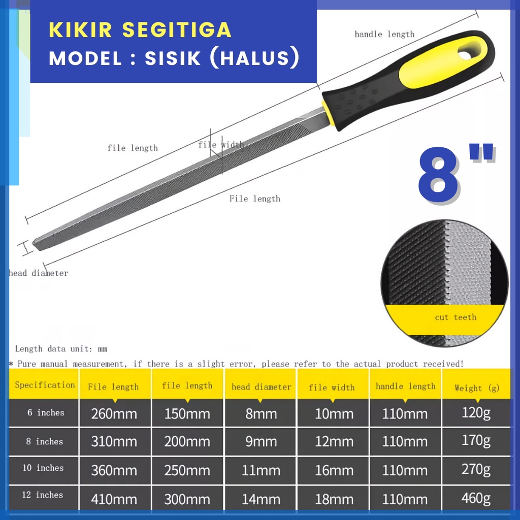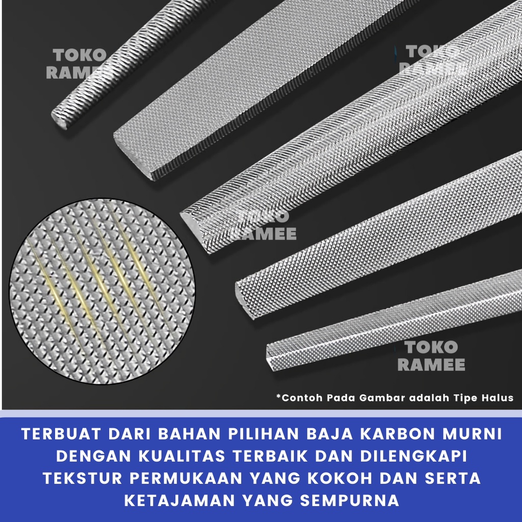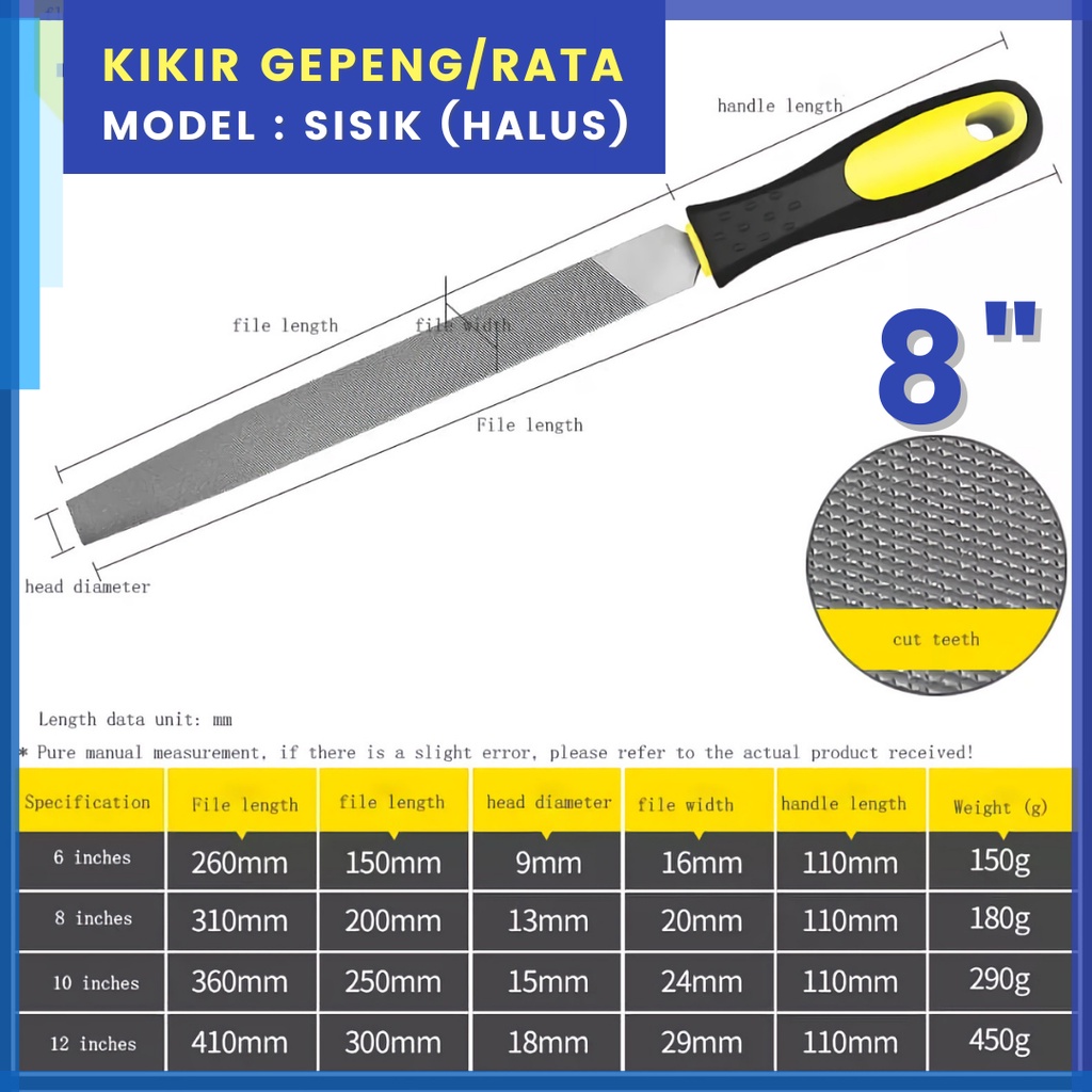 Kikir Besi Baja Ukuran 8" Inch (Besar) Model Gepeng Kotak Petak Flat / Setengah Bulat / Segitiga Untuk Alat Pengikir Kikir Plat Besi Kayu Fiber Akrilik HPL Alat Perkakas Set