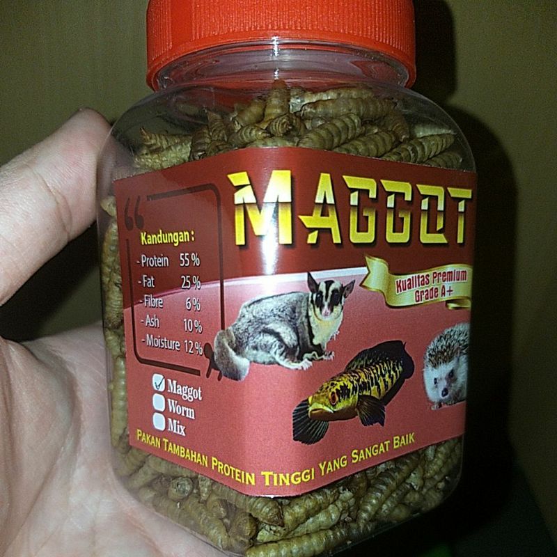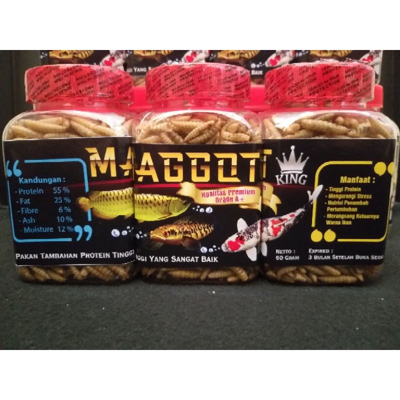Kingcrown Maggot Kering / ulat jerman (worm) Snack Premium Grade A+ 30-60gram, ukuran maggot premium dan bersih