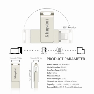 Kingston flashdisk 3 in 1 IOS OTG USB Flash Drive 512GB/1TB/2TB Rotation Pen Drive for iPhone/Android/PC [ISO+Micro+USB] Flash Drives