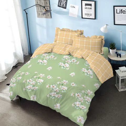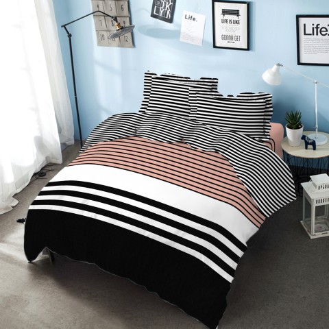 Kintakun Bed Cover Set Sprei 180x200 King D'luxe Microtex Polkadot Putih Hitam Rumbai T39cm 6in1